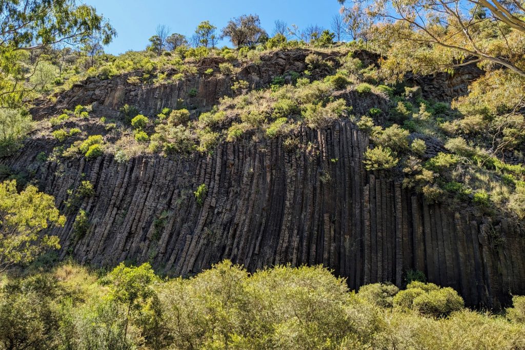 Imagine giant stone organ pipes jutting out from a cliff face, serenading the skies above Jacksons Creek. These impressive basalt columns were formed about a million years ago when molten lava cooled and cracked, creating the iconic structures we see today. ​